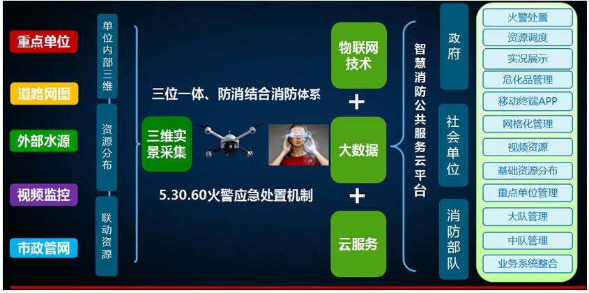 平台简介:以公安部消防局《消防信息化“十三五”总体规划》为指引,以大数据、云计算、物联网等信息技术为引擎,以司、政、后、防业务工作全面信息化支撑为落脚点,逐步实现“研判分析可靠可控、监管防控精准高效、灭火救援精确科学、部队管理正规有序”的工作为目标。
